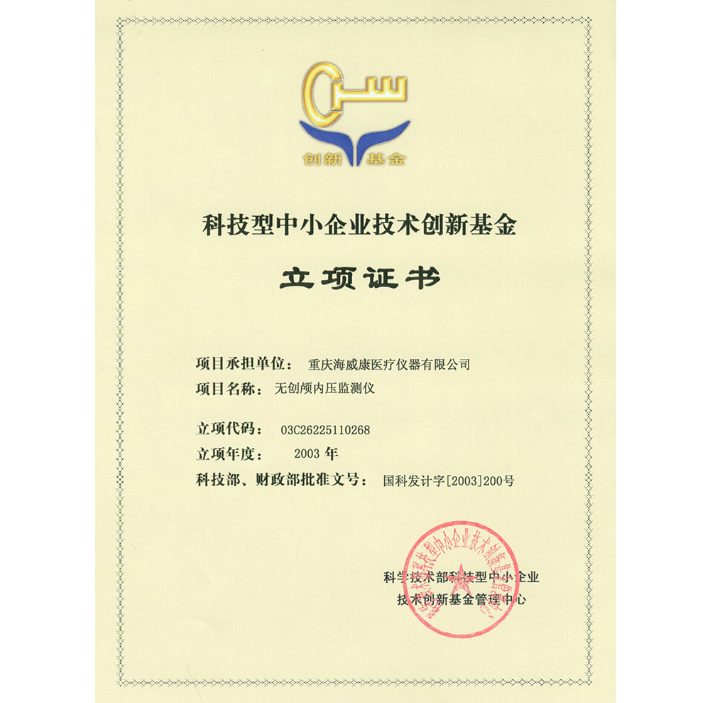 创新基金立项证书