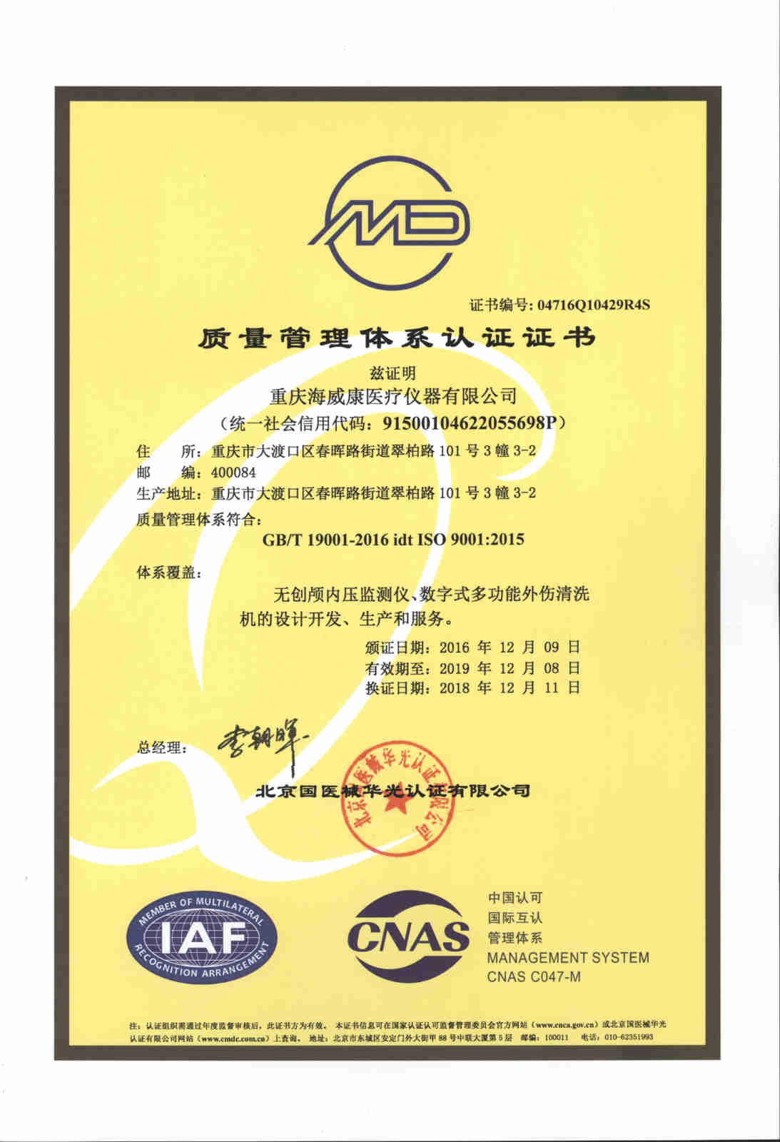 医疗器械质量体系证书(中)